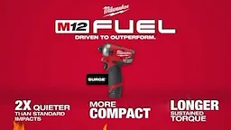 Nuestro destornillador hidráulico hexagonal M12 FUEL SURGE™ de ¼" es el primer destornillador hidráulico de 12 V de la industria. Con nuestro tren motriz hidráulico FLUID-DRIVE™, el destornillador hidráulico le permitirá experimentar un funcionamiento hasta 2 veces más silencioso con menos vibración para un funcionamiento sin inconvenientes y mayores velocidades de funcionamiento en comparación con los destornilladores de impacto estándar. Dado el tamaño compacto de la herramienta y de la batería, le permite un acceso sin igual en espacios estrechos, es más fácil transportarlo en un cinturón de herramientas y entra con facilidad en su bolso para herramientas en el lugar de trabajo. El motor sin escobillas POWERSTATE™ proporciona entre 0 y 3,200 RPM con potencia de salida constante para atornillar más rápidamente. La inteligencia REDLINK PLUS™ integrada es el sistema electrónico más avanzado del mercado: evita daños a la herramienta y a la batería causados por sobrecarga o sobrecalentamiento. El destornillador hidráulico inalámbrico es compatible con todas las baterías compactas o de capacidad extendida M12™ REDLITHIUM™ de Milwaukee®, las que proporcionan un mayor uso por carga y durante la vida útil de la batería que las baterías de la competencia. El control de impulsión DRIVE CONTROL de 4 modalidades del destornillador de impacto le proporciona un mayor control de la velocidad y potencia de salida para una mayor versatilidad en una amplia variedad de aplicaciones. La modalidad para tornillos autorroscantes reduce el desplazamiento lateral cuando se colocan tornillos autorroscantes, además de reducir el atornillado excesivo, la rotura y el desgaste de los tornillos.
