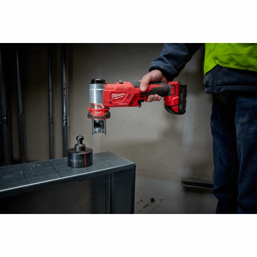 Cada producto dentro del sistema de perforación de Milwaukee se construyó según los principios de reducir los pasos tediosos de la realización de orificios, mejorar la velocidad del proceso y limitar la fatiga del usuario. La herramienta perforadora M18™ FORCE LOGIC™ de 6 toneladas aporta estos beneficios en lo que respecta a las aplicaciones de servicio. Tiene suficiente potencia para perforar orificios de hasta 4" en acero suave de calibre 12 y acero inoxidable de calibre 14, mientras es un 40 % más liviana. Su diseño compacto y de ángulo recto permite tener un mejor acceso en espacios estrechos. El sistema de alineación de conexión rápida entrega una fácil configuración sin el peso de la herramienta, y acelera la realización repetitiva de orificios. Los punzones y troqueles EXACT™ permiten realizar perforaciones en acero suave e inoxidable. Los retículos de color rojo intenso ayudan en la alineación precisa, y la superficie de agarre en los punzones permite realizar un atornillado más rápido. La herramienta perforadora M18™ FORCE LOGIC™ de 6 toneladas entrega la forma más fácil de perforar.