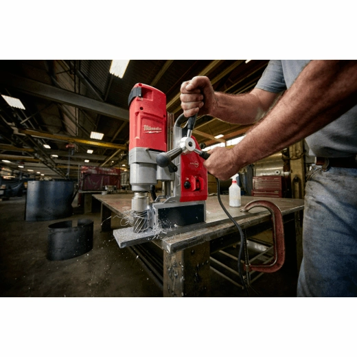 El taladro electromagnético de 1-5/8" de Milwaukee ofrece la configuración, el corte y la perforación más rápidos. Su motor de 13 amperios ofrece la perforación más rápida con cortadores anulares o brocas de perforación giratorias. Equipada con una caja de engranajes de 2 velocidades, la herramienta puede ajustarse sin herramientas entre cortadores anulares a 475 RPM y brocas de perforación giratorias a 730 RPM.