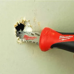 El serrucho de punta con escofina de Milwaukee® es la única sierra de punta del mercado que integra el escofinado de orificios a lo largo del lateral de la hoja para expandir rápidamente orificios o para alisar bordes rugosos de tablarroca después de cortar. Complete el sobremoldeado de goma para aumentar la comodidad y reducir el deslizamiento de las manos; la nueva sierra también cuenta con una hoja para yeso/tablarroca de 6" de espesor para mayor durabilidad y vida útil.
