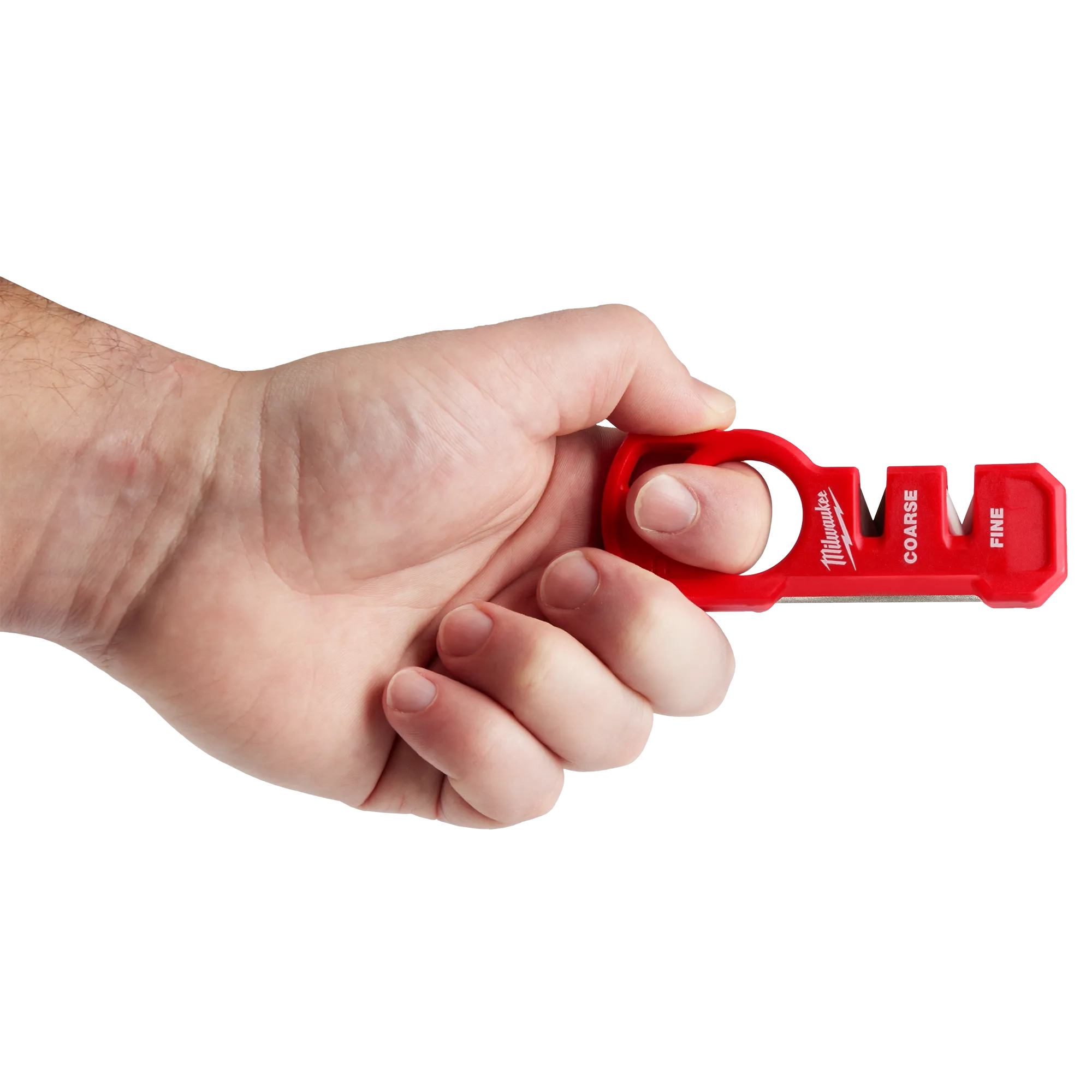 Nuestro afilador compacto de cuchilla tiene un bucle para los dedos grande para un AGARRE SEGURO y mayor control mientras afila. Este afilador pasante tiene tres superficies de afilado compatibles con la mayoría de las cuchillas; carburo grueso para un afilado rápido del borde, cerámica final para dar acabado al borde afilado, y grano de diamante para afilado de estilo libre a las hojas especializadas. Su tamaño compacto es ideal para el transporte en el bolsillo y tiene un imán para un almacenamiento fácil y cómodo en el lugar de trabajo. Esta herramienta también está lista para la instalación.