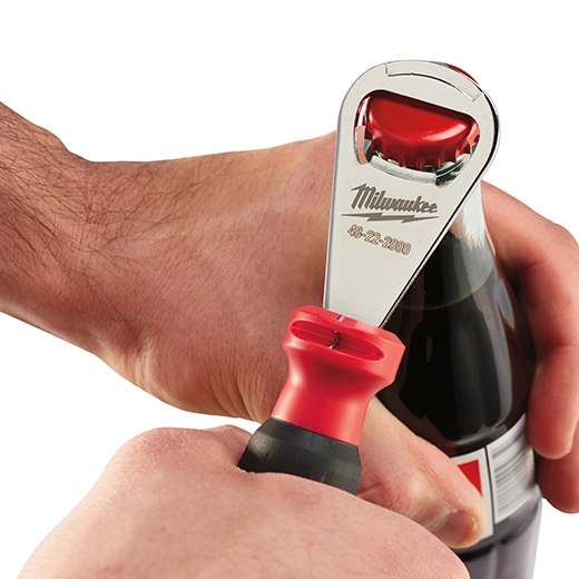 El destapador de botellas de Milwaukee® está diseñado para uso en aplicaciones de servicio pesado dentro y fuera del lugar de trabajo con una cabeza de acero endurecido durable y un pelacables integrado. El destapador de botellas también presenta una protección contra óxido de acero cromado para usar en entornos húmedos, el asa de agarre acolchonado de Milwaukee® y la marca de tapa posterior para una fácil identificación.