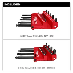 Nuestro kit de 2 piezas incluye un juego de 13 llaves hexagonales estilo L SAE y 9 llaves métricas con extremos de bola que cuenta con las llaves de más fácil acceso en el mercado. El soporte pivotante con llaves acodadas hace que tomar la llave del tamaño necesario sea más rápido y fácil. Las llaves Allen soportan más torque y prolongan la vida útil de la herramienta en las condiciones más difíciles del lugar de trabajo. El soporte y las llaves tienen marcas de alto contraste y larga duración para una identificación rápida de tamaño. Con un extremo de bola, las llaves pueden acceder fácilmente a los sujetadores incluso en ángulos difíciles. El soporte pivotante con un orificio para colgar simplifica el transporte y el almacenamiento. El kit de 2 piezas de juegos de llaves hexagonales estilo L con extremos de bola de Milwaukee® cuenta con nuestra garantía limitada de por vida.