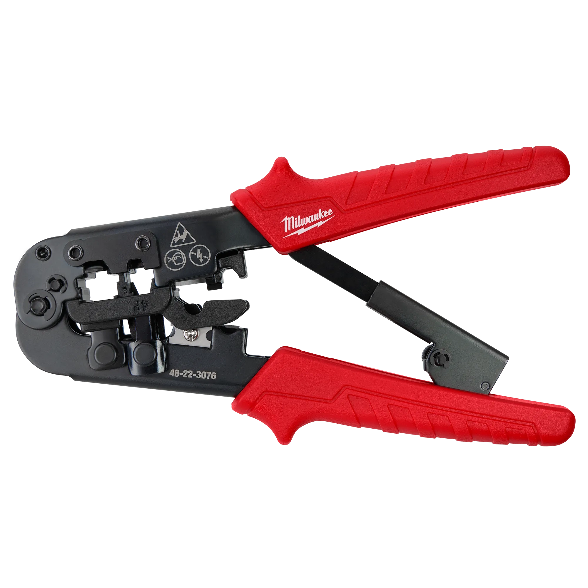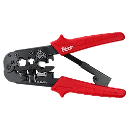 Nuestra pinza crimpeadora y pelacables modular de trinquete proporciona crimpeados fáciles, ya que la herramienta multifuncional corta, pela y crimpea cables con conectores RJ22, RJ11/RJ12 y RJ45 MODULARES. Las hojas de corte y el receptáculo pelacables reducen el tiempo de trabajo de preparación y eliminan la necesidad de portar varias herramientas. Equipada con un mecanismo de trinquete de ciclo completo de liberación fácil, esta herramienta garantiza una terminación de conectores completa. Transición fácil entre conectores de 4, 6 y 8 posiciones. Los mangos con empuñadura ergonómica reducen la tensión de las manos y permiten que los usuarios crimpeen de manera cómoda.