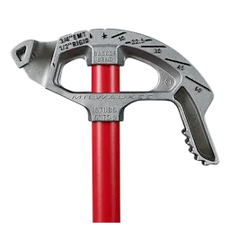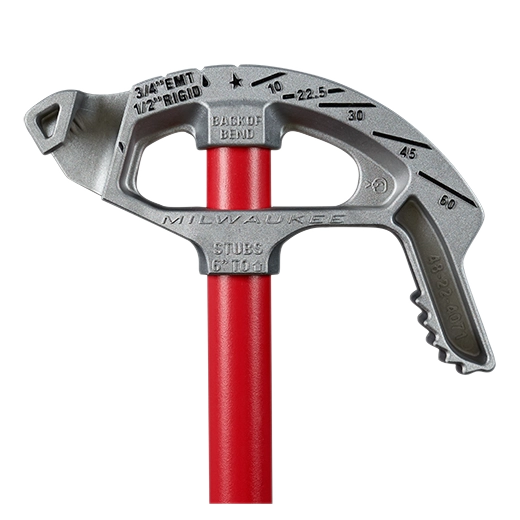 Nuestra dobladora de tubos de aluminio de 3/4" cuentan con marcas de alto contraste para la mejor visibilidad, lo que le permite doblar de manera más fácil y precisa. Un gancho y pedal reforzados y una zapata de aluminio liviano le proporcionan mayor durabilidad al mismo tiempo que un mango fijado con dos pernos no se soltará después de varios usos. La zapata de la dobladora de tubos de conducción cuenta con la mayoría de las referencias de doblado, además de indicadores de referencia resistentes al desgaste para facilitar el uso. Los multiplicadores de desplazamiento están en la zapata, mientras que las muescas del centro del ensillado de 30°, 45° y 60° y un indicador de doblez de 90° de la parte posterior le permiten doblar tubos de manera fácil y precisa. La dobladora de aluminio es mejor para tubos EMT de 3/4", rígidos de 1/2" e IMC de 1/2".