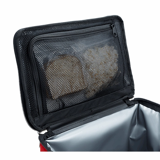 El enfriador para el lugar de trabajo de Milwaukee Tool está específicamente diseñado para ser lo suficientemente durable para soportar condiciones de trabajo exigentes. El enfriador utiliza un aislamiento doble y un recubrimiento a prueba de fugas de grado alimenticio para mantener el hielo frío durante 24 horas sin fugas. Además, Milwaukee construyó este enfriador con la base de material balístico 1680D y cierres metálicos para servicio pesado para tener una vida útil más prolongada. Un gancho para flexómetro con destapador ofrece máxima versatilidad. Por último, Milwaukee implementó un bolsillo tecnológico y un compartimiento de almacenamiento seco para hacer que este enfriador sea una solución de almacenamiento versátil en el lugar de trabajo.