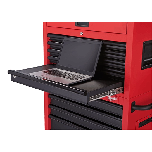 La caja y el gabinete de almacenamiento de acero de 30" es la solución de almacenamiento de acero más durable y mejor equipada de su clase. Al presentar un marco de hierro con ángulos reforzados, rieles para cajones de cierre suave para 100 libras, y ruedecillas industriales de 5", la caja de acero para almacenamiento de Milwaukee tiene una capacidad de peso de 1,400 libras y está diseñada con diversas características innovadoras tales como un centro de alimentación incorporado, una pared con clavijas metálicas y un organizador incorporado para maximizar la productividad.