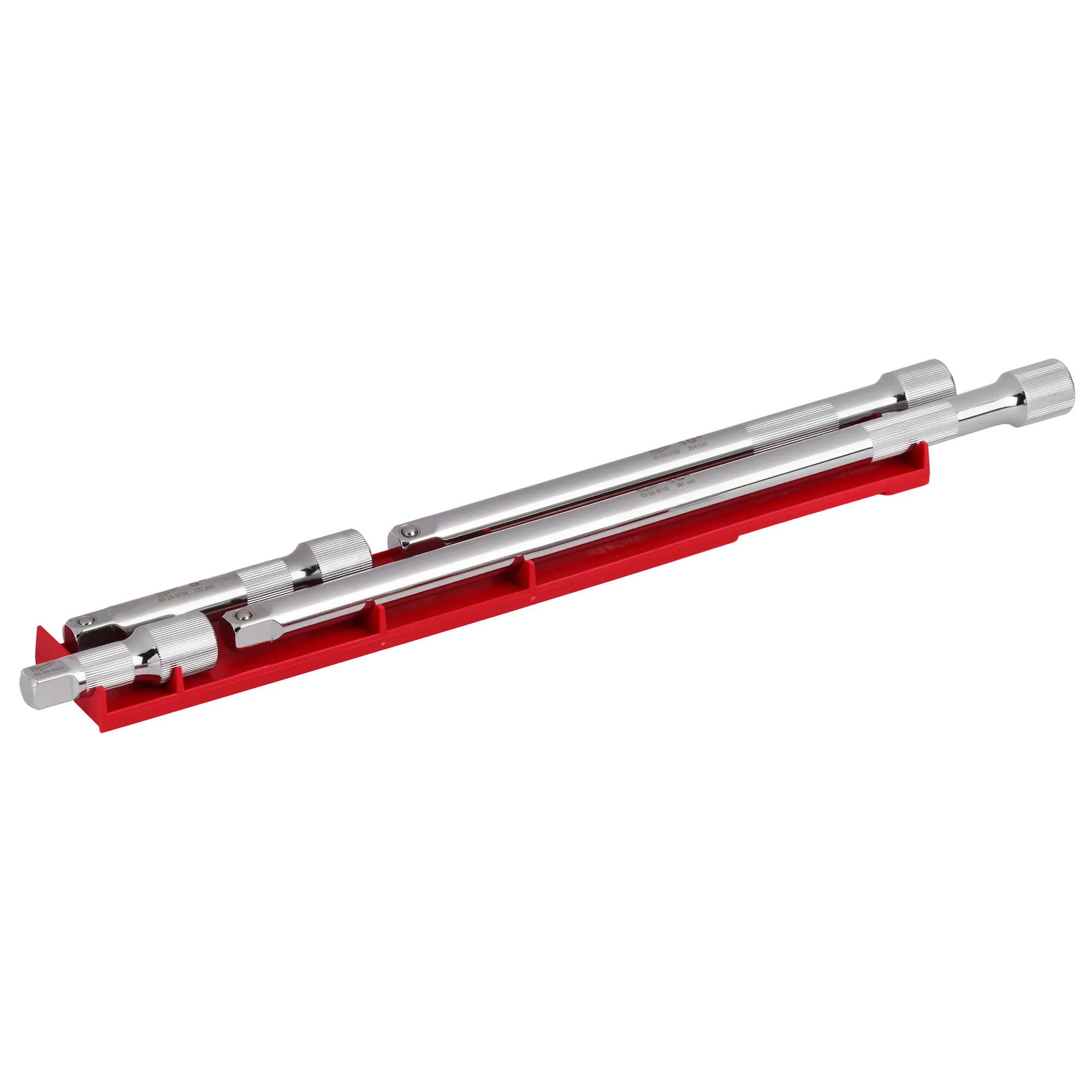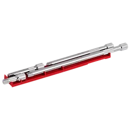 Las extensiones en este juego de 4 piezas cuentan con la superficie de moleteado más grande, lo que ofrece el mayor control. Cada extensión tiene moleteado en el extremo de boca hembra para ayudar cuando aprieta sujetadores con la mano o trabaja con materiales aceitosos. Además, extensiones en este juego tienen moleteado en el eje para un mayor control. El juego incluye un bastidor de almacenamiento compacto duradero, diseñad para optimizar el espacio del cajón para un uso a largo plazo. El cromado brinda protección contra el óxido y la corrosión. Todas las herramientas manuales para mecánicos de Milwaukee® cuentan con una garantía de por vida.