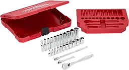 Juego de trinquete con boca de 1/4" y cubos SAE, 26 piezas