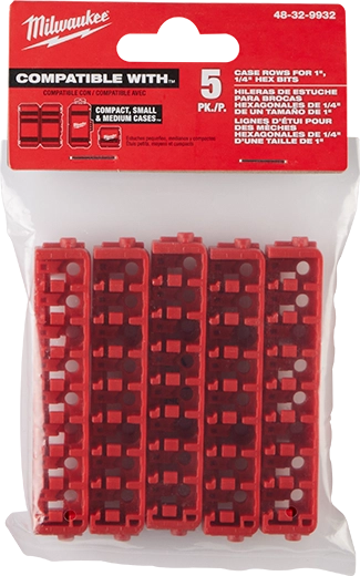 Las hileras para accesorios de broca de inserción de 1” son compatibles con todos los estuches pequeños y medianos personalizables, incluyendo 48-32-9920, 48-32-9921, 48-32-9930, 48-32-9931