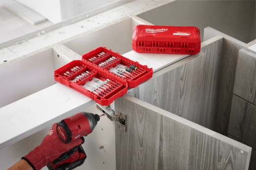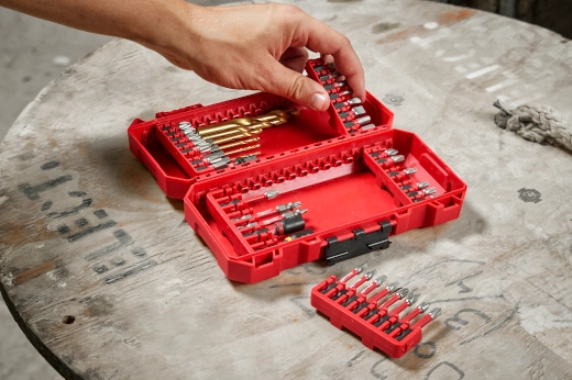 Las hileras para accesorios se conectan a los taladros y destornilladores de impacto de MILWAUKEE© para almacenamiento de brocas en la herramienta