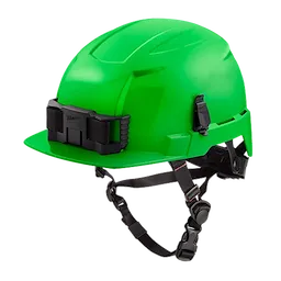 Nuestros cascos de seguridad Tipo 2, Clase E de ala delantera le entregan mejor protección y mayor comodidad. Estos cascos de seguridad ofrecen protección de golpes superiores y laterales. Estos cascos de seguridad para la construcción son compatibles con los accesorios BOLT™, con cuatro ranuras para accesorios BOLT™ y dos ranuras para accesorios universales que integran fácilmente equipos adicionales de protección personal y accesorios, de manera que pueda fijar los accesorios en forma simultánea. Cada casco incluye un soporte para lámpara BOLT™ de MILWAUKEE® que es compatible con la mayoría de las lámparas para una conexión fácil y segura, y un gancho de marcador BOLT™ para un fácil acceso a bolígrafos y marcadores. Los cascos de Milwaukee tienen una suspensión acolchada y cómoda que incluye un trinquete basculante ajustable para mayor comodidad. El casco de estilo escalador también tiene una correa de mentón con cinco hebillas ajustables y cómodas para una mayor comodidad. La banda de sudor y el forro del casco antimicrobianos impiden la formación de olores y bacterias, son extraíbles y pueden lavarse a máquina. Estos cascos de seguridad son ANSI Tipo 2 y puede personalizarlos con su logotipo.
