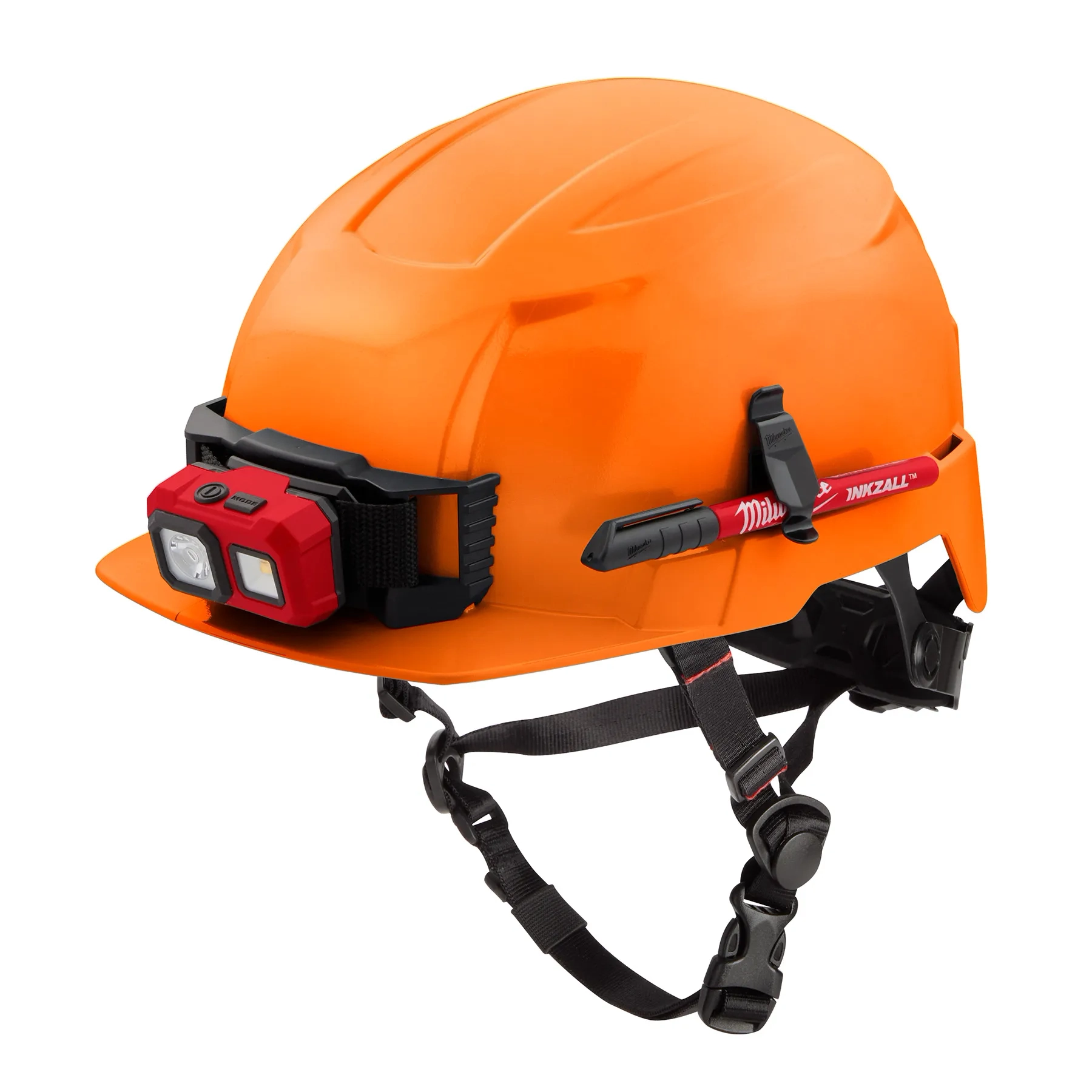 Nuestros cascos de seguridad Tipo 2, Clase E de ala delantera le entregan mejor protección y mayor comodidad. Estos cascos de seguridad ofrecen protección de golpes superiores y laterales. Estos cascos de seguridad para la construcción son compatibles con los accesorios BOLT™, con cuatro ranuras para accesorios BOLT™ y dos ranuras para accesorios universales que integran fácilmente equipos adicionales de protección personal y accesorios, de manera que pueda fijar los accesorios en forma simultánea. Cada casco incluye un soporte para lámpara BOLT™ de MILWAUKEE® que es compatible con la mayoría de las lámparas para una conexión fácil y segura, y un gancho de marcador BOLT™ para un fácil acceso a bolígrafos y marcadores. Los cascos de Milwaukee tienen una suspensión acolchada y cómoda que incluye un trinquete basculante ajustable para mayor comodidad. El casco de estilo escalador también tiene una correa de mentón con cinco hebillas ajustables y cómodas para una mayor comodidad. La banda de sudor y el forro del casco antimicrobianos impiden la formación de olores y bacterias, son extraíbles y pueden lavarse a máquina. Estos cascos de seguridad son ANSI Tipo 2 y puede personalizarlos con su logotipo.