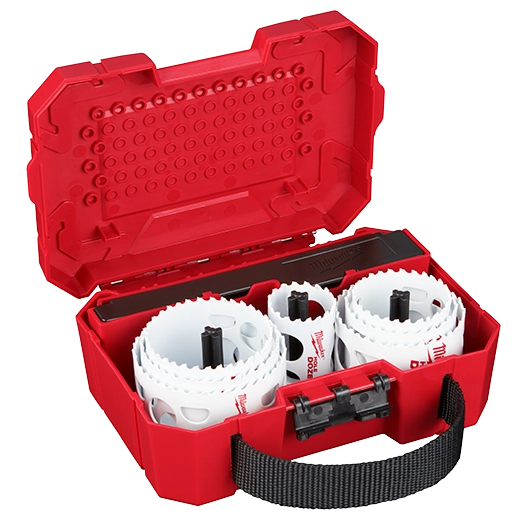 Nuestro kit de 11 piezas de broca sierra bimetálica HOLE DOZER™ incluye un nuevo diseño de dientes de 3.5 TPI que le ofrece la vida útil más prolongada en aplicaciones de metal. Estas brocas sierra bimetálicas HOLE DOZER™ de MILWAUKEE® cuentan con la única garantía limitada de por vida contra roturas de la superficie dentada de la industria y pueden abordar todas las aplicaciones de uso general, lo que las convierte en las brocas sierra más duraderas. Nuestras RANURAS DE ACCESO COMPLETO resuelven la frustración del retiro de obstrucciones, lo que lo hace ser más productivo con menos tiempo de inactividad entre orificios. El nuevo diseño de ranura también le da una mayor visibilidad del piloto para una ubicación precisa y eyección más fácil de virutas, lo que mantiene fría la herramienta. El revestimiento termoestable de HOLE DOZER™ le permite cortar más rápido y está optimizado para herramientas inalámbricas, lo que permite realizar 25 % más orificios por carga. Nuestras brocas sierra bimetálicas HOLE DOZER™ son un orgulloso producto de EE. UU.. Este kit de broca sierra incluye, además, un estuche, que le brinda la capacidad de personalización, gracias a los tapones intercambiables. Puede guardar mandriles, brocas piloto y más dentro de la caja de accesorios removible o retirarlo completamente para crear más espacio para las brocas sierra. Cada estuche para broca sierra de MILWAUKEE® cuenta con un diseño de rejilla reforzada en la parte superior e inferior, además de cierres para servicio pesado, con el fin de mantener seguras a las brocas sierra dentro de este diseño duradero de estuche duro. El estuche para broca sierra pequeño de Milwaukee cabe de manera conveniente en los organizadores Packout™, lo que facilita el transporte y el almacenamiento.