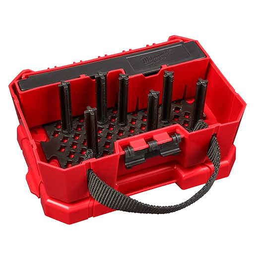 Nuestro estuche para broca sierras pequeñas está diseñado para la personalización, ofreciéndole una fácil personalización con un sistema de clavijas intercambiables. Las clavijas intercambiables son compatibles con todas las sierras de perforación MILWAUKEE®, incluyendo HOLE DOZER™, HOLE DOZER™ con dientes de carburo y Diamond Max™, proporcionando una serie de posibilidades de personalización. La caja de accesorios extraíble ofrece la opción de transportar mandriles, brocas piloto y mucho más. La extracción de la caja de accesorios le permite instalar más brocas sierra y tamaños mayores. Cada estuche para brocas sierra de corona Milwaukee cuenta con un diseño de rejilla reforzada tanto en la parte superior como en la inferior, además de pestillos de alta resistencia para sujetar con seguridad las sierras de corona dentro de este diseño de estuche duro y duradero. Este estuche para sierras de orificio pequeño cabe cómodamente en los organizadores PACKOUT™ de Milwaukee para un almacenamiento óptimo.
