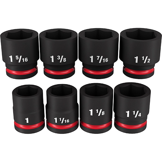 El kit incluye 8 cubos SAE estándar. Se incluyen los siguientes tamaños: 1, 1-1/16, 1-1/8, 1-1/4, 1-5/16, 1-3/8, 1-7/16, 1-1/2