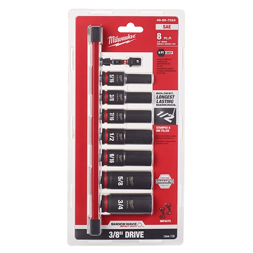 Juego de 8 piezas de cubos profundos SAE con boca de 3/8" de 6 puntas SHOCKWAVE Impact Duty™