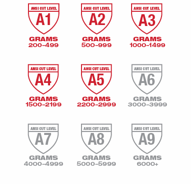 En 2018 la Oficina de Estadísticas Laborales (Bureau of Labor Statistics) informó 63,830 lesiones por cortes, laceraciones o perforaciones y encontró que la media de días fuera del trabajo por una lesión en las manos era de 6. ANSI/ISEA 105 es la Norma nacional estadounidense para las clasificaciones de protección para las manos que reglamenta cómo se prueban y clasifican los guantes para distintos niveles de resistencia a los cortes. Actualizada en 2016 de 1-5 a A1-A9, el número más alto indica una mayor resistencia a los cortes o, de manera más técnica, puede soportar más gramos de fuerza.