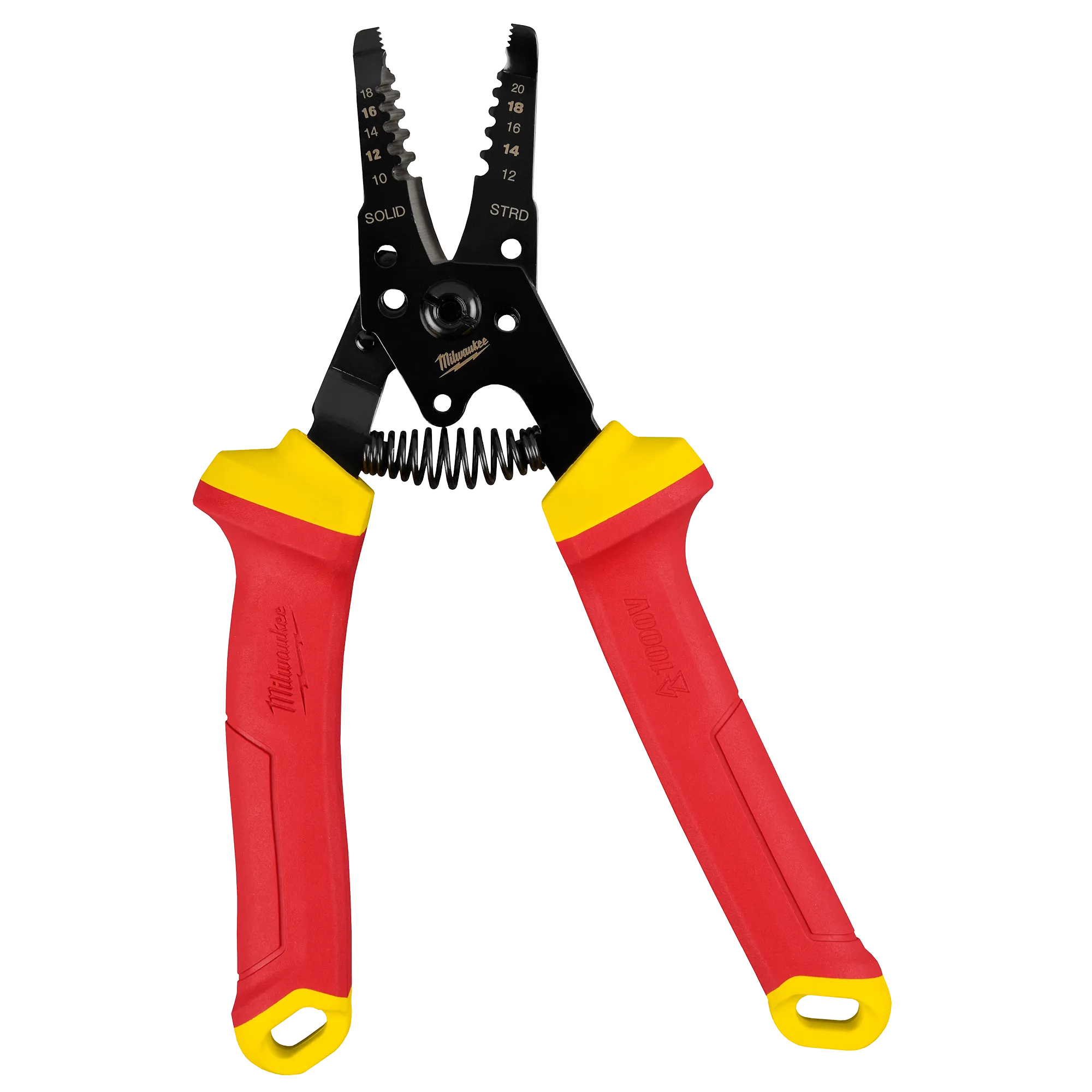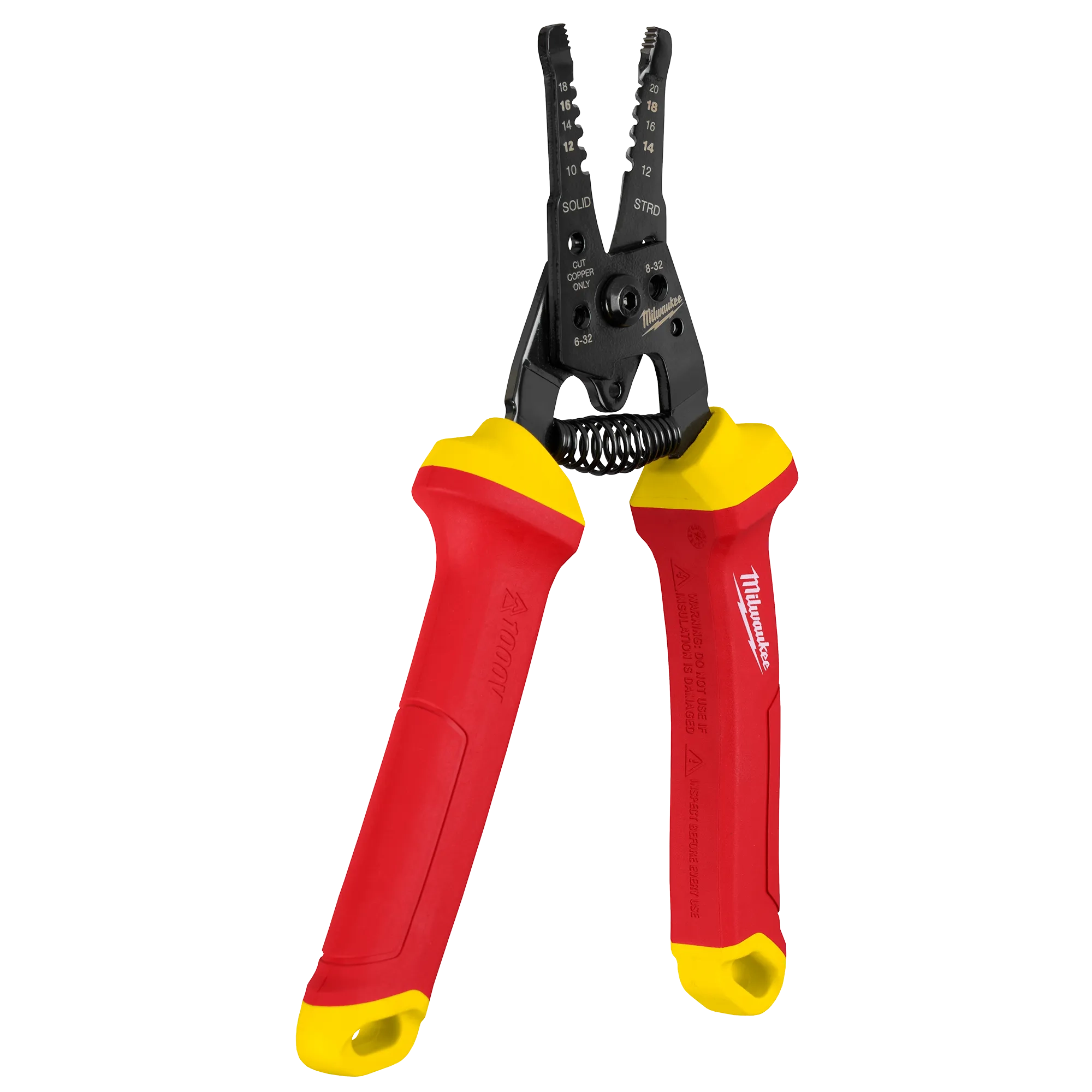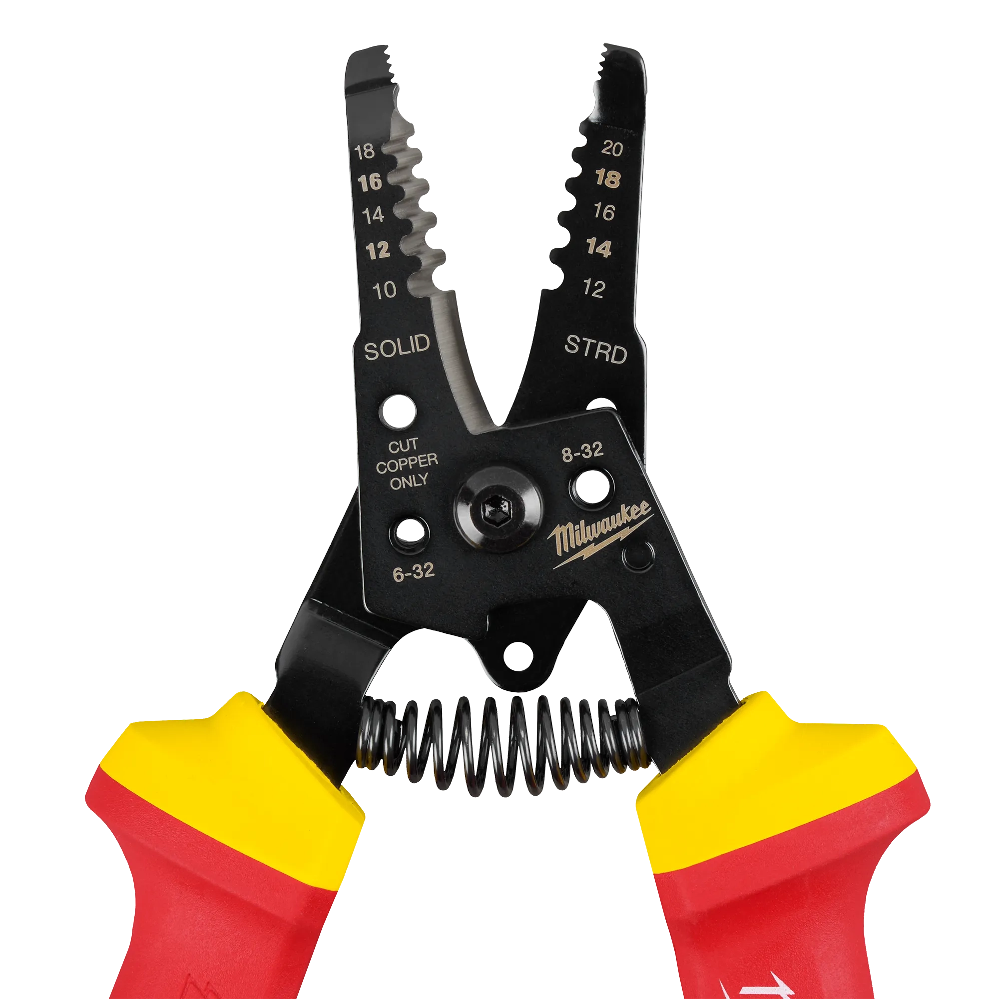 Nuestro pelacables y cortador con aislamiento para 1000 V para cables de 10-20 AWG de MILWAUKEE® está diseñado para un pelado de cables preciso. La capa de aislamiento para 1000 V retardante de llamas en los mangos proporciona la máxima protección. Nuestro pelacables cuenta con un diseño de hoja curva que le permite hacer cortes limpios en tamaños más grandes de cables sólidos y trenzados. El cortador de pernos integrado tiene la capacidad para cortar pernos de 6/32 y 8/32. Nuestro pelacables y cortador con aislamiento para 1000 V para cables de 10-20 AWG de Milwaukee® tiene clasificación de UL y certificación conforme a las normas IEC 60900 y ASTM F1505 para herramientas manuales con aislamiento y cuentan con la garantía limitada de por vida de Milwaukee.