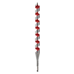 La broca de barrena de 1-3/8" x 18' de Milwaukee® perfora hasta 2 veces los clavos de brocas de barrena de la competencia sin necesidad de reafilado. Perfore madera limpia o incrustada con clavos con confianza cuando instale el cable Romex, las líneas de agua Pex, barras de refuerzo, pernos y sogas en columnas, equipos de juego y parquización. Las ranuras son más anchas para lograr una eliminación máxima de astillas, incluso en orificios profundos. El acabado pulido y revestido de las ranuras hacen que las astillas no se adhieran a la broca, incluso cuando se perfore material que contenga savia o pegamento. El diseño de corte a través del centro crea un punto de impacto más sólido contra los clavos en comparación con los diseños por delante y por detrás del centro de la competencia. La mayor longitud del eje facilita las perforaciones más profundas o aéreas sin una extensión.