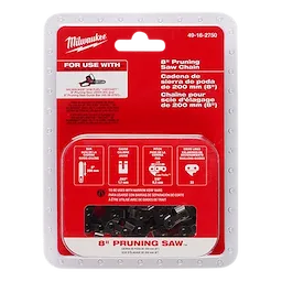 Nuestra cadena de sierra de podar de 8" de MILWAUKEE® se usa con la sierra de podar M18 FUEL™ HATCHET™ de Milwaukee de 8" (3004-20) y la barra de guía para sierra de podar de 8" (49-16-2751). La cadena con máximo número de dientes cuenta con un cortador en cada eslabón de la transmisión, lo cual minimiza la vibración y produce cortes limpios. El diseño ofrece cortes rápidos y minimiza los contragolpes. La cadena de sierra cuenta con un diseño duradero y es resistente al clima para una mayor vida útil.