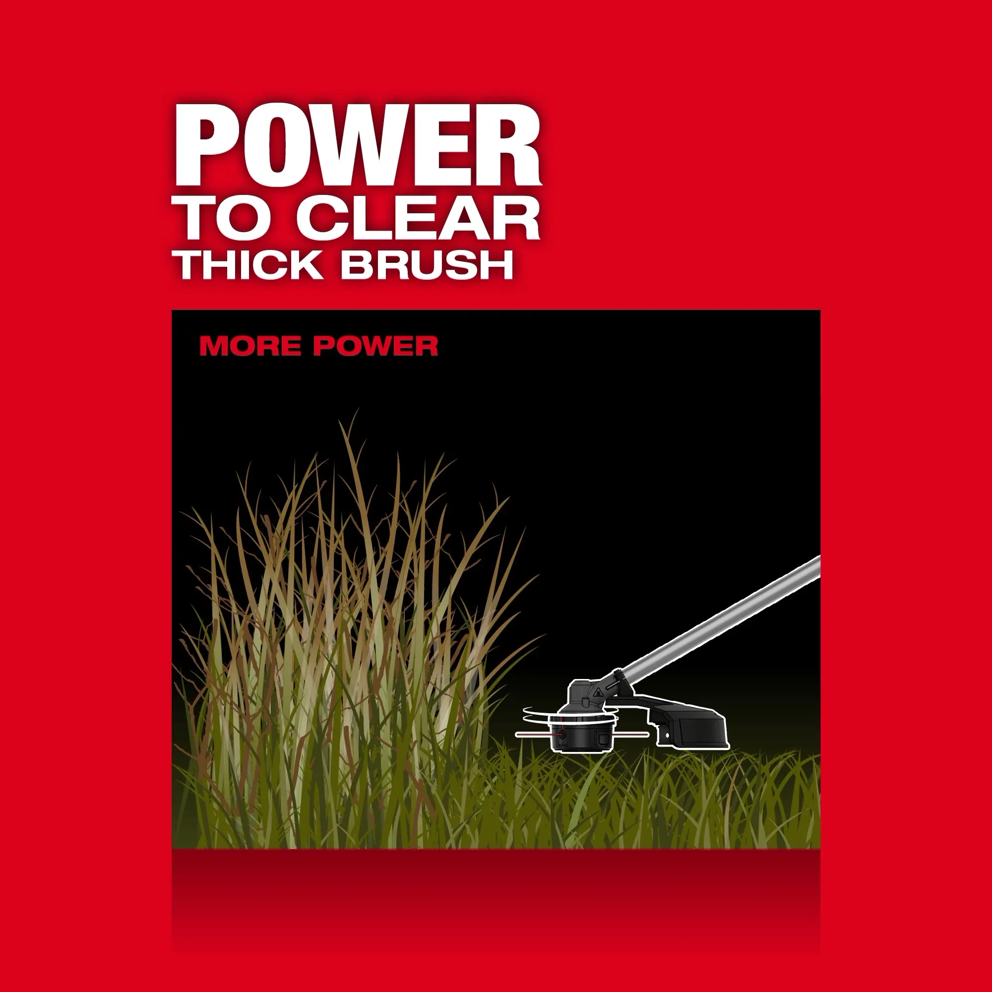 Cabezal de desbrozadora de carga fácil de Milwaukee®: Anchura de corte de 14” a 16”, acepta hilos de repuesto para desbrozadora de 0.080" y 0.095"; Recargue el hilo de repuesto para desbrozadora sin desmontar el cabezal