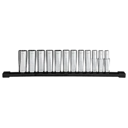 Juego de cubos métricos de pozo profundo de 12 puntas y boca de 3/8”, 12 piezas