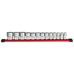 Nuestro juego de 13 cubos SAE de 12 puntas con boca de 1/2" y lados FOUR FLAT™ está diseñado desde el comienzo para ser parte de la familia más versátil de cubos. Los cubos de MILWAUKEE® cuentan con un diseño innovador de cuatro lados planos paralelos, lo que evita que rueden; además, son compatibles con llaves. Las marcas de tamaño grabadas con láser permiten una identificación fácil, y el cromado ofrece protección contra el óxido y la corrosión. Este juego incluye un riel de almacenamiento para mejor organización. Todos los cubos de Milwaukee® cuentan con una garantía de por vida.
