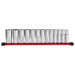 Juego de cubos SAE de pozo profundo de 12 puntas con boca de 1/2", 13 piezas