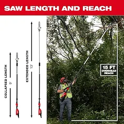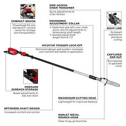 - Esta sierra tiene la mayor velocidad de cadena en su clase, más rápida que las sierras de poste accionadas por batería o gasolina a 25 m/s