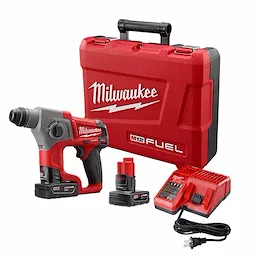 El kit de martillo rotativo M12 FUEL™ SDS Plus de 5/8" proporciona hasta el doble de tiempo de operación, hasta un 75 % más de velocidad y la máxima capacidad de la broca SDS Plus de su clase. Milwaukee ha combinado su exclusivo motor sin escobillas(Carbones) POWERSTATE™, la batería REDLITHIUM™ y la inteligencia REDLINK PLUS™ para ofrecer un martillo rotativo de 12 V que compite con las herramientas de 18 V que hay en el mercado en la actualidad. Con solo 10" de largo y 3.9 libras, esta herramienta proporciona un rendimiento y un tiempo de operación comparables con una herramienta mucho más grande, a una fracción del tamaño y el peso. El diseño electroneumático permite hacer perforaciones de hasta 5/8" en hormigón vertido y mampostería. Para tener máxima versatilidad, independientemente de la aplicación o la orientación, la herramienta también ofrece un funcionamiento en 2 modalidades, martillo rotativo y solo martillo. El kit incluye 2 baterías de capacidad extendida M12™ REDLITHIUM™ XC 4.0, un cargador de baterías de iones de litio M12™ y un estuche de transporte de plástico.