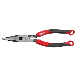 Nuestras pinzas de punta larga de 8" (EE. UU.) de Milwaukee® ofrecen a los profesionales una herramienta que ofrece el mejor agarre y los cortes más fáciles. Nuestras pinzas de punta de aguja cuentan con dientes en cruz y endurecidos con láser para un máximo agarre cuando jale o gire. El punto de pivote optimizado está diseñado para ofrecer el mejor margen de maniobra en cortes difíciles. Nuestras pinzas de punta larga están diseñadas para ofrecer la experiencia más suave de apertura y cierre desde el inicio, sin necesitar un período de prueba. Para una mayor versatilidad, nuestras pinzas cuentan con un cabezal estriado para conductos de ½ pulgada a 1 pulgada y un extractor de cinta pasacable. Nuestras pinzas vienen listas para anclaje y se ofrecen con una empuñadura por inmersión con un orificio para anillo dividido y una empuñadura cómoda con un orificio para acollador. Nuestras pinzas de punta larga de Milwaukee están hechas en EE. UU. con la mejor tecnología de fabricación de su clase y con materiales provenientes de EE. UU., como acero forjado en prensa duradero, y cuentan con el respaldo de una garantía completa de por vida.