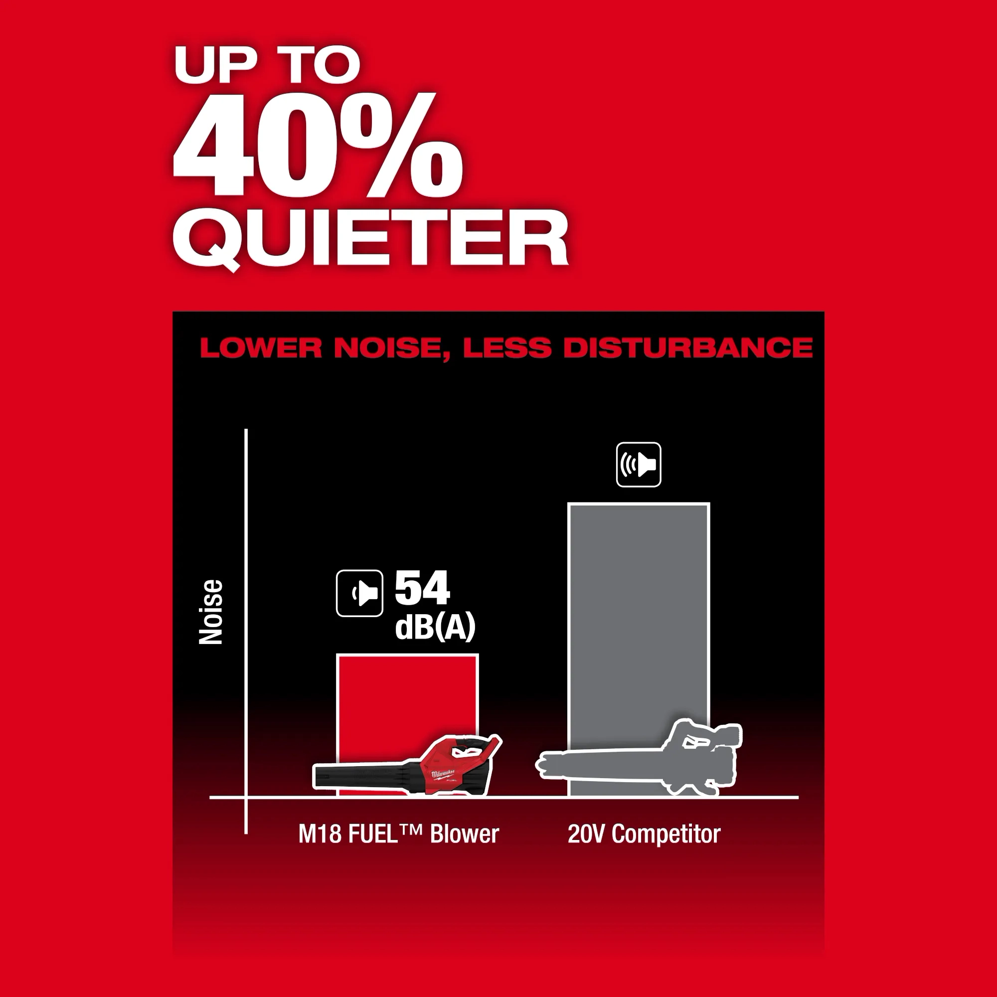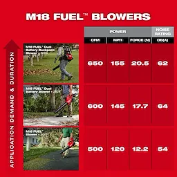 Nuestro soplador M18 FUEL™ está diseñado para satisfacer las necesidades del profesional de mantenimiento de jardines en limpiezas rápidas de rutina. El motor sin escobillas POWERSTATE™ ofrece 500 CFM, 120 MPH y 12.2 N, lo que proporciona a los usuarios niveles más altos de potencia constante para permitirles despejar más hojas, césped y residuos livianos, y alcanzar la aceleración completa en menos de un segundo. Este soplador de hojas inalámbrico tiene niveles de ruido bajos de 54 dB(A), hasta 40 % más silencioso que la competencia, lo que permite que los usuarios trabajen cómodamente y reduzcan las molestias a los transeúntes. La inteligencia REDLINK PLUS™ ofrece una comunicación total de sistema y sin interrupciones entre el soplador y la batería, para obtener niveles sin comparación de rendimiento, protección y productividad. El diseño liviano y equilibrado y el seguro deslizante de velocidad variable ambidiestro en la palanca proporciona a los usuarios más control para despejar. Este soplador está optimizado para usarlo con las baterías M18™ REDLITHIUM™ HIGH OUTPUT™. La batería M18™ REDLITHIUM™ HIGH OUTPUT™ HD12.0 (no se incluye) proporciona a los usuarios la mejor potencia y tiempo de operación de su clase. Nuestro soplador M18 FUEL™ forma parte del sistema M18™, completamente compatible con más de 250 soluciones.