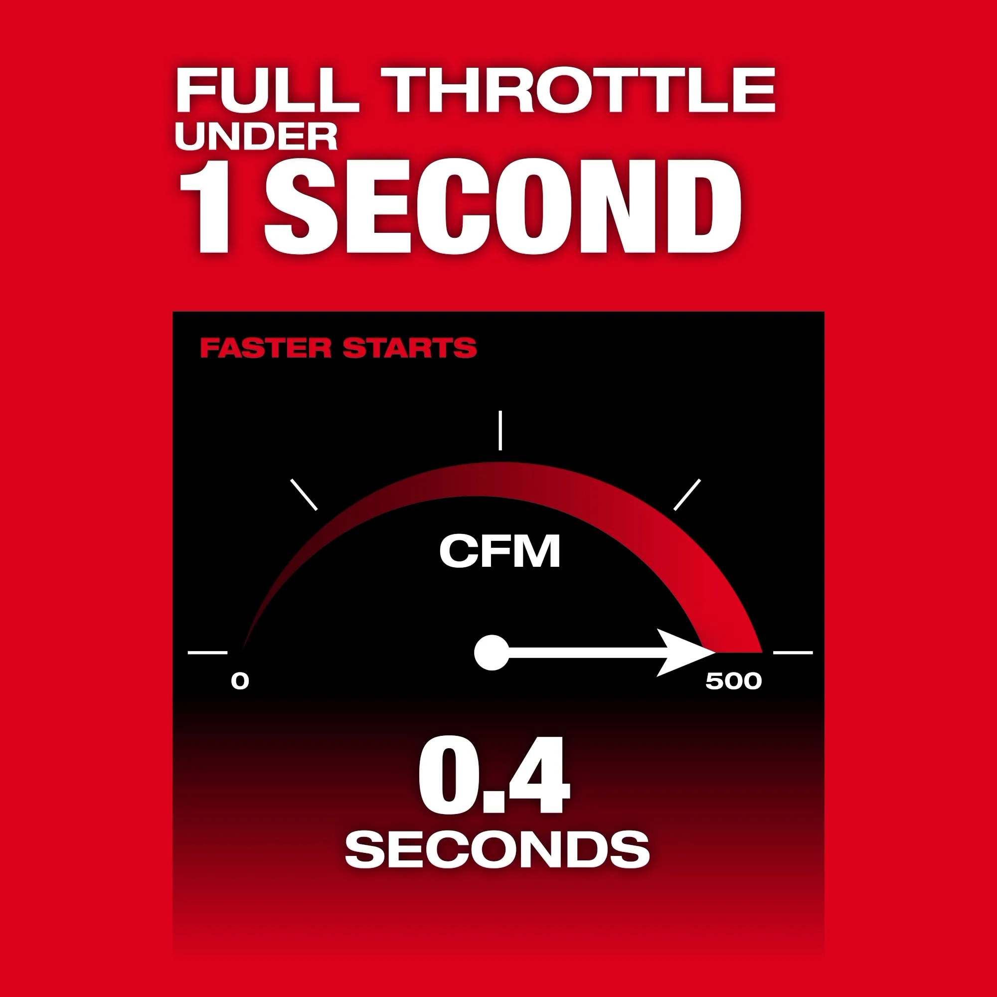 • La inteligencia REDLINK PLUS™ proporciona potencia inmediata, con la que alcanza 500 CFM, 120 MPH y 12.2 N de fuerza de soplado en menos de 1 segundo