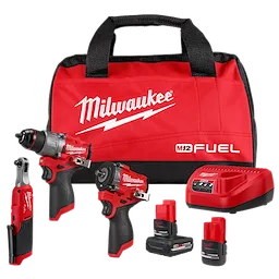 Nuestra llave de impacto corta M12 FUEL™ de 3/8” ofrece potencia sin comparación en un diseño compacto y liviano, y ofrece velocidades de aplicación 50 % más rápidas. Alimentada con el motor sin escobillas POWERSTATE™, ofrece de 0 a 3,000 RPM y hasta 550 pies-lb de torque de arranque para manejar las aplicaciones más difíciles. Con solo 2.2 lb sin accesorios, cuenta con luces de trabajo de LED triple para iluminación sin sombras y un DRIVE CONTROL™ de 4 modalidades para mayor precisión. AUTO SHUT-OFF™ limita el torque a 15 pies-lb para tareas de apriete manual, mientras que el modo de extracción de pernos reduce las RPM para mantener seguros los pernos. Los cambios de modo son fáciles y rápidos con solo tocar dos veces el gatillo. El trinquete de alta velocidad M12 FUEL™ de 3/8" es el más rápido de su clase para instalar y extraer sujetadores. Su cabezal compacto permite un mejor acceso en espacios estrechos, mientras la carcasa de horquilla de acero y el motor sin escobillas POWERSTATE™ garantizan una durabilidad excepcional. Nuestro taladro percutor M12 FUEL™ de 1/2" es el taladro percutor subcompacto más potente y compacto, y ofrece la velocidad más rápida con carga. Con solo 6" de longitud, permite un acceso superior en espacios estrechos. Alimentado con el motor sin escobillas POWERSTATE™ y la inteligencia REDLINK PLUS™, ofrece un rendimiento térmico sin comparación para perforación y atornillado constante de alta velocidad. Este kit incluye un cargador, una batería M12™ REDLITHIUM™ HIGH OUTPUT™ XC5.0 y una batería CP2.5—donde ambas ofrecen 25 % más potencia y funcionan 25 % más frías que las baterías REDLITHIUM™ estándar.