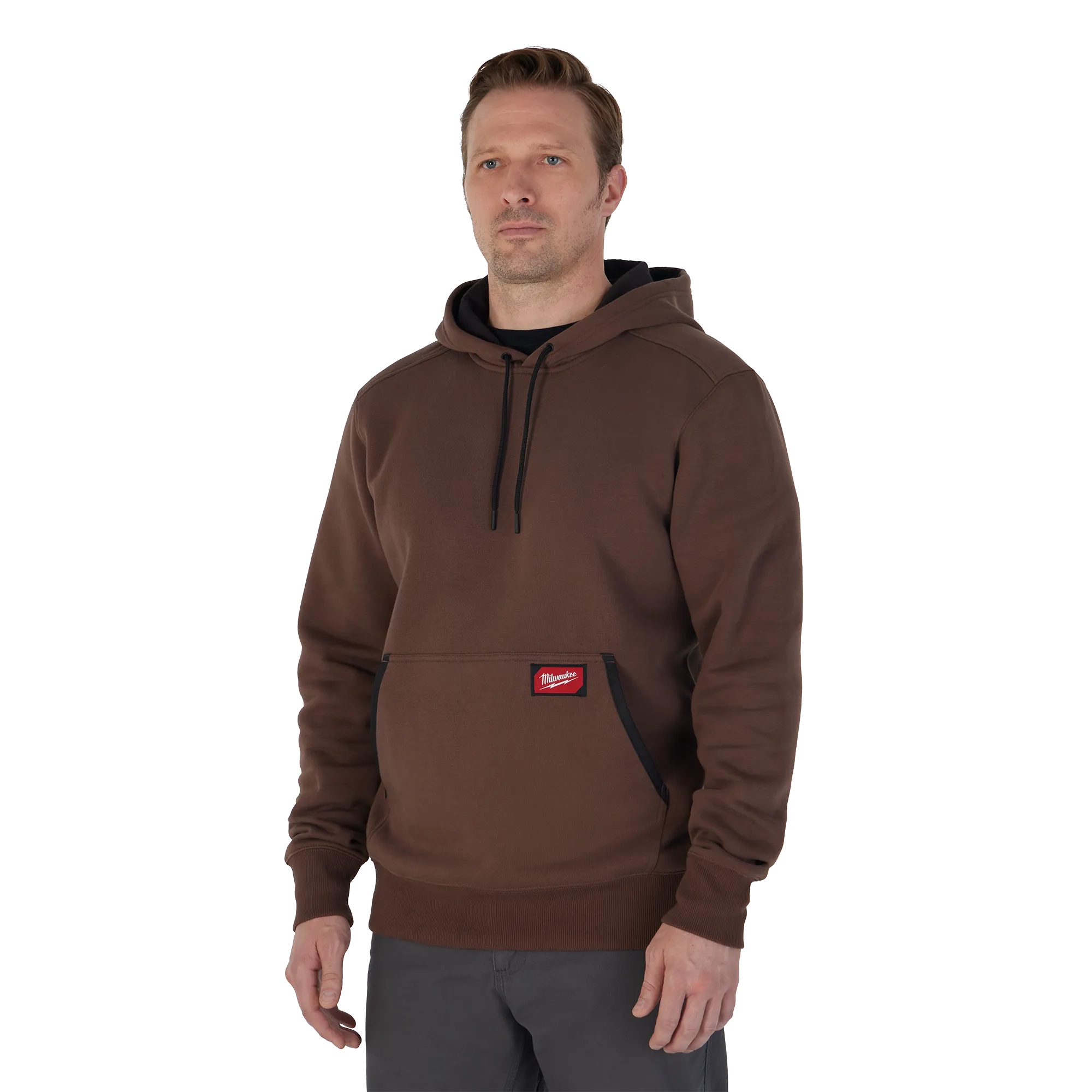 Our Midweight Pullover Hoodie is EASY TO LAYER and MORE BREATHABLE. Our midweight hoodie offers seasonal versatility while delivering on a trade focused design with drop shoulder seams and reinforced pocket seams. The comfortable fit and design allows our users to move freely and easily on the job. Choose from Black, Brown, Gray, or Blue colors, available in sizes small to 3XL.