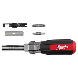 Nuestro destornillador de presión 9 en 1 con múltiples brocas es el destornillador más versátil con una hoja de presión. Cuenta con 9 funciones exclusivas, lo que reduce la cantidad de herramientas que debe llevar un usuario. Este destornillador de presión multifuncional incluye 4 brocas comunes y 3 aprietatuercas, los que más solicitan los profesionales de la red, además de una hoja de perforación 110/66 de dos lados. El mango con empuñadura acolchonada que no se pela ofrece la mejor durabilidad de su clase y no se pelará. Con el respaldo de la garantía limitada de por vida de Milwaukee.