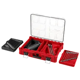 Nuestro juego de 30 piezas de llaves combinadas métricas y SAE con organizador PACKOUT™ incluye llaves combinadas que brindan hasta un 25 % más de torque. El mango de boca abierta MAX BITE™ mejora el agarre de la llave en tuercas y pernos, y la geometría reduce el redondeo y el desgaste. El diseño del mango de perfil en doble T proporciona comodidad en aplicaciones de alto torque y cuenta con un etiquetado de tamaño relleno de tinta fácil de leer. Todas las herramientas manuales de Milwaukee® están respaldadas por una garantía de por vida. El organizador PACKOUT™ incluido forma parte del sistema de almacenamiento modular más versátil y duradero. El organizador tiene clasificación IP65 y está fabricado con materiales resistentes a los impactos para mayor durabilidad dentro y fuera del lugar de trabajo. Todo PACKOUT™ cuenta con una garantía limitada de por vida.