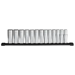 Juego de cubos métricos de pozo profundo de 12 puntas con boca de 1/2", 13 piezas