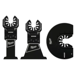 Incluye: (1) hoja de HCS para multiherramienta para cortar madera OPEN-LOK™ de 1-3/8", (1) hoja de HCS para multiherramienta para cortar madera OPEN-LOK™ de 2-1/2", (1) hoja segmentada de HCS para multiherramienta para cortar madera OPEN-LOK™ de 3-1/2"