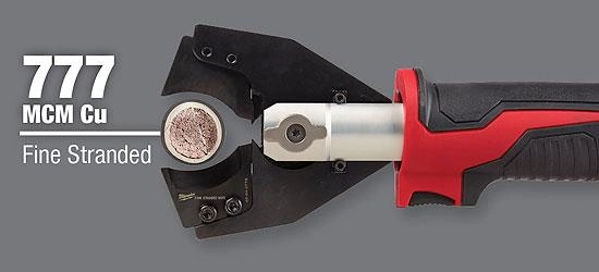 750 MCM Cable CutterOur M18™ FORCE LOGIC™ Cable Cutter with 750 MCM Cu/Al Jaws (2672-21) delivers the fastest installation ready cuts. It has an open jaw, fully balanced in-line design, cutting effortlessly in the tightest panels. Featuring the best power to size ratio, it powers through 750 MCM copper or 1000 MCM aluminum 2x faster than competitors, delivering over 250 cuts per charge.