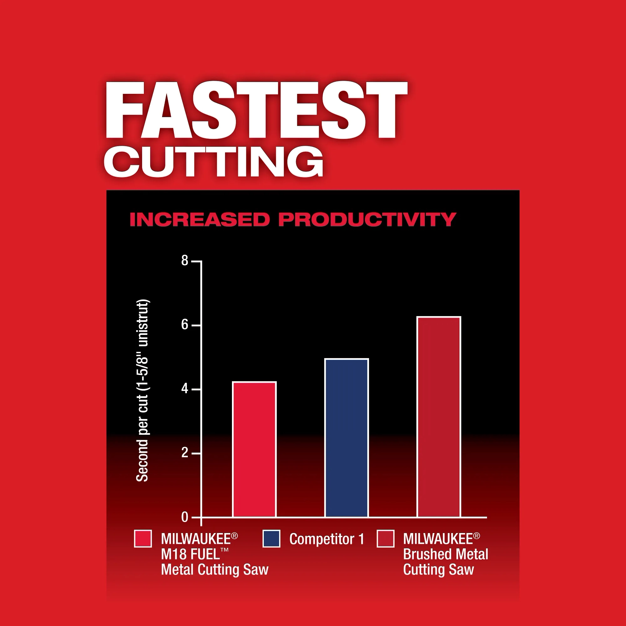 Brushless motor with 3,900 RPMs delivers the fastest cutting metal cutting saw