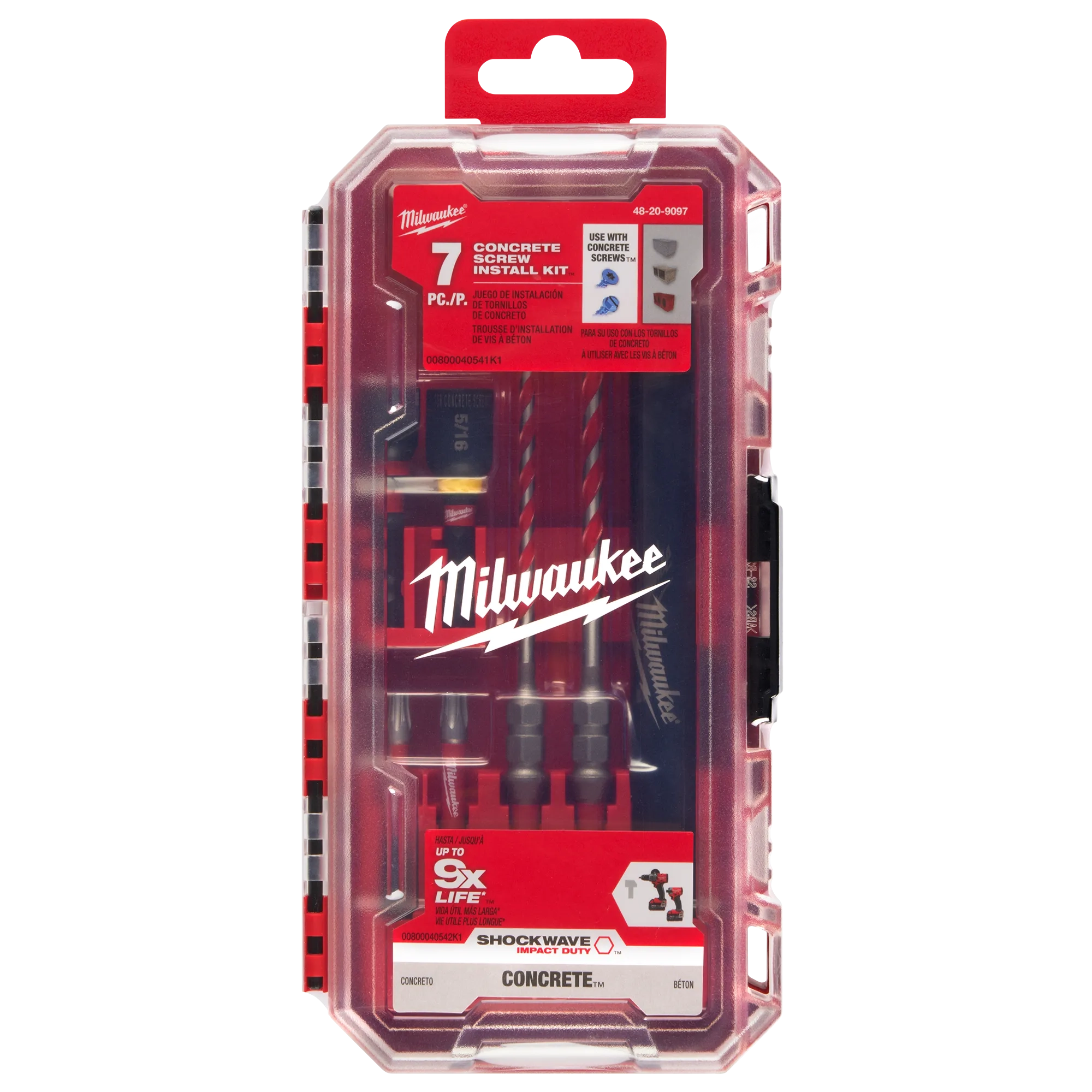 Kit Includes: (1) 5/32" x 4" x 6" Carbide Hammer Drill Bit w/ Hex, (1) 3/16" x 4" x 6" Carbide Hammer Drill Bit w/ Hex, (1) 1/4" SHOCKWAVE™ Impact Duty Concrete Screw Nut Driver, (1) 5/16" SHOCKWAVE™ Impact Duty Concrete Screw Nut Driver, (1) SHOCKWAVE™ Impact Duty T25 2" TORX® Bit, (1) SHOCKWAVE™ Impact Duty T30 2" TORX® Bit , (1) Drive Sleeve