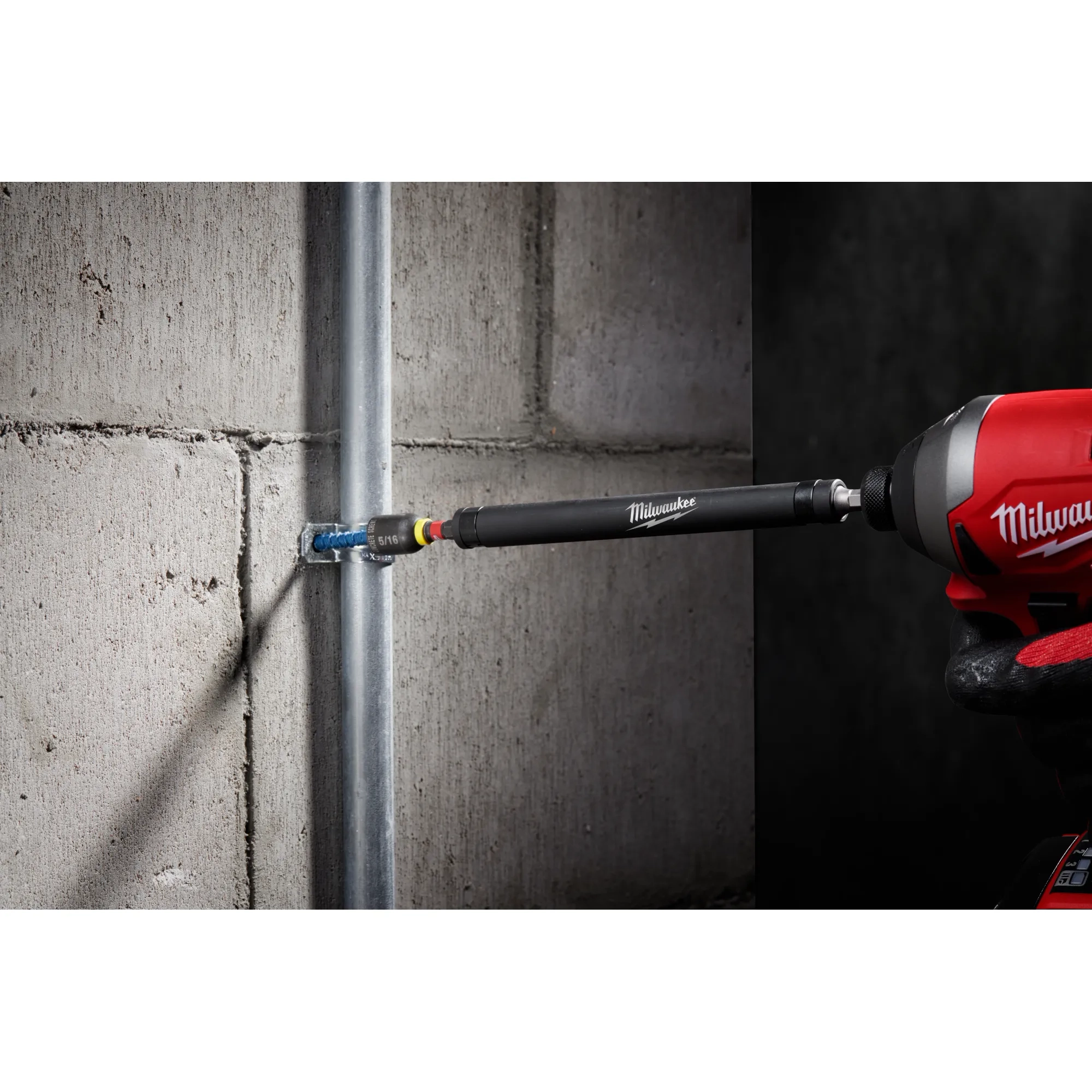 Built in 1/4" hex shoulder for use in concrete screw installation kit