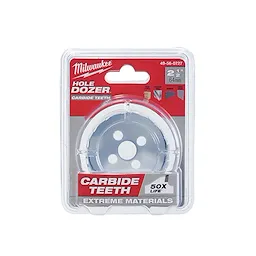 Our 2-1/2" HOLE DOZER™ with Carbide Teeth Hole Saws feature a new 3 TPI design that offers you fast cuts with the durability of a bi-metal hole saw and the life of a carbide hole saw. These carbide teeth hole saws provide the longest life in general purpose and extreme materials with the ability to cut through stainless steel, cast iron, fastener-embedded wood, cement board, fiberglass, plaster, asphalt shingles, and more with ease. Deep gullets clear material fast while cutting, and Milwaukee's ALL-ACCESS SLOTS solve the frustration of plug removal, making you more productive with less downtime between holes. The new slot design also gives you increased pilot visibility for accurate placement and faster chip ejection keeping your cut cool. The HOLE DOZER™ with Carbide Teeth Hole Saw has a cutting depth of 1.62 in., allowing clearance to handle cuts in a wide range of materials. MILWAUKEE® proudly makes HOLE DOZER™ with Carbide Teeth Hole Saws in the USA.