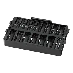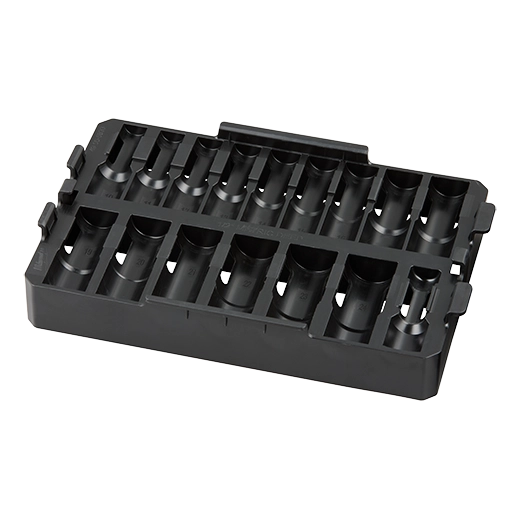 Tray fits the following Milwaukee SHOCKWAVE Impact Duty™ Deep Sockets & Accessory: 10mm, 11mm, 12mm, 13mm, 14mm, 15mm, 16mm, 17mm, 18mm, 19mm, 20mm, 21mm, 22mm, 23mm, 24mm, 3" Extension