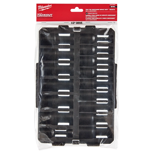 Our durable plastic removable trays are compatible with our SHOCKWAVE™ IMPACT DUTY™ sockets. Featuring raised tabs for easy removal from our PACKOUT™ organizers and tool chest drawers. Each tray features clear size labels for the impact sockets and accessories compatible with the tray are optimized for organization. This tray is Black to indicate compatibility with Metric sizes. Trays are also available in Red indicating compatibility with SAE sizes. Our sets that include SHOCKWAVE™ IMPACT DUTY™ sockets and PACKOUT™ organizers are available for purchase separately. This set can be ordered with impact sockets and organizer with the following part number: 49-66-6803.