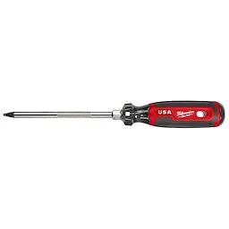 Our Milwaukee® Cushion Grip Screwdrivers (USA) are manufactured to give the professional the best-fitting screwdriver with max grip. Our screwdriver tips are custom machined to deliver a precise fit and reduce stripping during demanding fastening applications. For added confidence, the tips are laser etched to increase the gripping surface. Manufactured with high-strength boron-infused steel for increased hardness, our screwdrivers stand up to the demands of the site with ultimate durability and life. Providing increased versatility, select screwdrivers include a wrench-ready bolster for added torque and a knurled shank for precision control. Quick identification markings on the handle make it easy to identify screwdriver tip size and type, including Phillips, cabinet, ECX, slotted, and square. The demolition screwdrivers also include a hammer-ready strike cap. Our screwdrivers range in shank sizes from 3-inch to 10-inch. Our Milwaukee Cushion Grip Screwdrivers (USA) are made in the USA with best-in-class manufacturing technology and USA-sourced materials all backed by a complete Lifetime Guarantee.