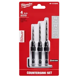 Our 3PC Countersink Bit Set features #6, #8 and #10 Countersinks. The bits pre-drill and countersink. The 1/4" Quick Change Hex Shanks allow for quick size changes. The drill bit length is adjustable to allow for precise depth control.