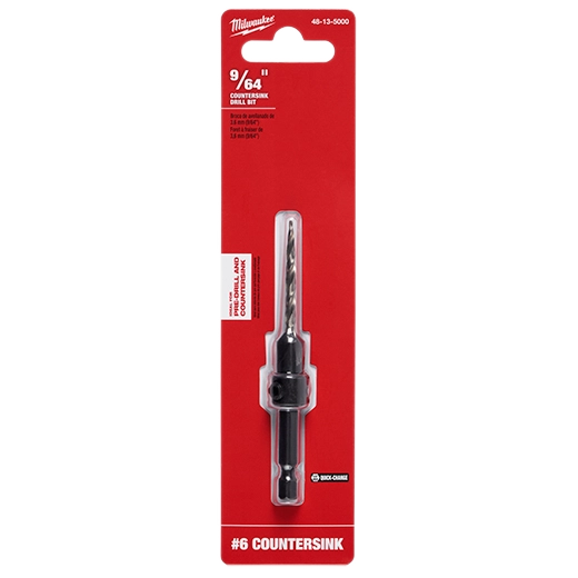 Our #6 Countersink features a 9/64" Drill Bit. The bits pre-drill and countersink. The 1/4" Quick Change Hex Shanks allow for quick size changes. The drill bit length is adjustable to allow for precise depth control.